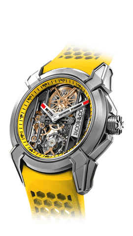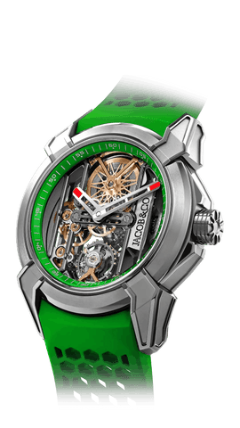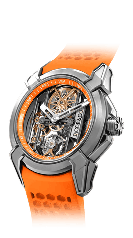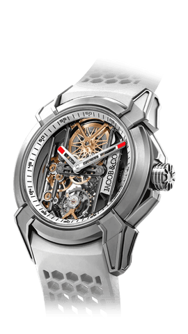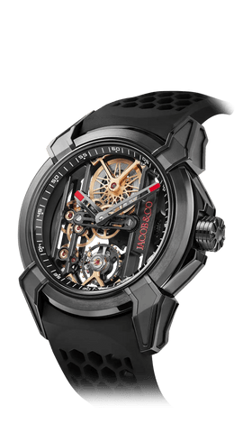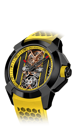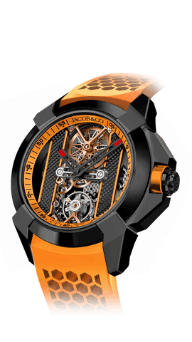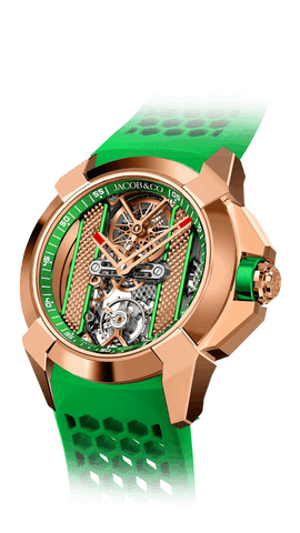 In 2009, the brand launched its first high-watchmaking timepiece, the “Quentin” watch, with a 31-day power reserve, seven mainspring barrels, and a vertical, side-mounted band tourbillon. In 2014 Jacob & Co. unveiled the revolutionary collection, the ‘Astronomia,” which featured an exposed vertical movement with four arms: one arm a magnesium globe, one arm a Jacob cut diamond, and two arms powered by two triple-axis gravitational tourbillons. The Astronomia astonished the watch industry.