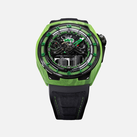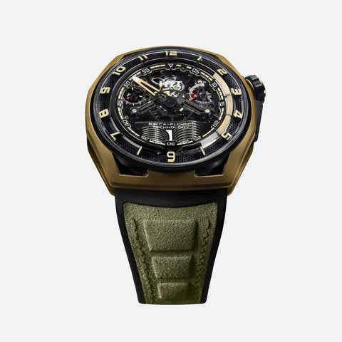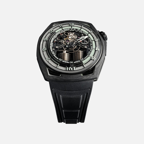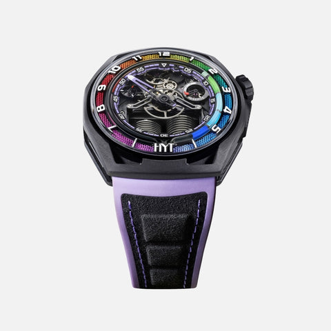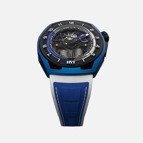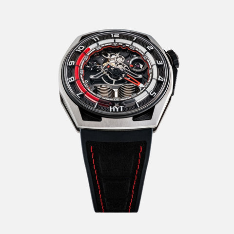 Founded in 2012, the independent Swiss watch brand HYT introduced an original and exclusive approach to measuring time developed entirely in-house: HYT’s patented mechanical-fluidic technology combines a mechanical movement with a retrograde time indication in which a fluorescent fluid circulates through a system of capillary tubes.
