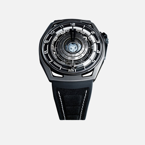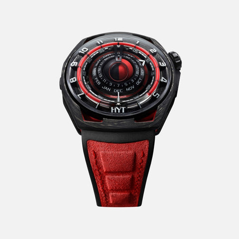 Founded in 2012, the independent Swiss watch brand HYT introduced an original and exclusive approach to measuring time developed entirely in-house: HYT’s patented mechanical-fluidic technology combines a mechanical movement with a retrograde time indication in which a fluorescent fluid circulates through a system of capillary tubes.