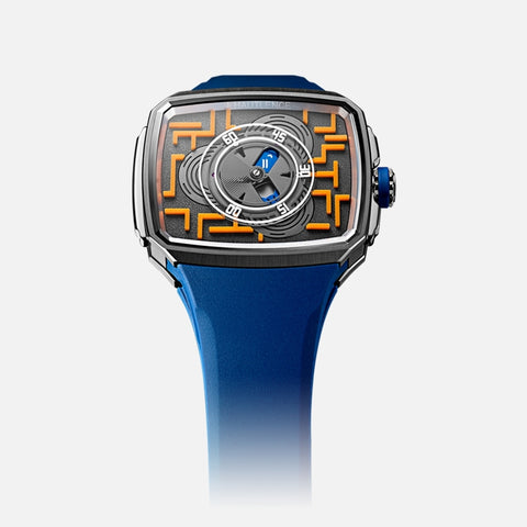 Founded in 2004, HAUTLENCE – whose name is an anagram of Neuchâtel – pays tribute to the birthplace of the watchmaking art and is one of the original independents as we know them today. Currently located in the canton of Schaffhausen, Switzerland, HAUTLENCE has become recognized for its iconic TV shaped case and its original concepts in movement and time. It adopts a think tank approach and brings a new vision to the art of watchmaking, while respecting its roots. From hours on chains and spheres to minutes on rotating sapphire discs, HAUTLENCE pushes the boundaries of traditional watchmaking codes while uniting them with mechanical solutions.
